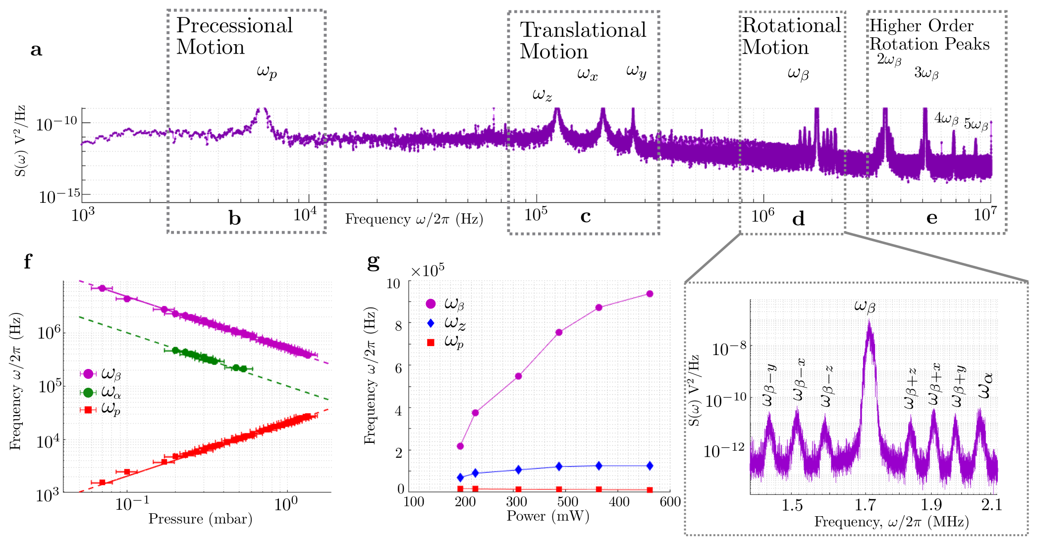 Giving rise to rich spectrum. We showed that by meticulously analysing the motional spectrum of the trapped nanoparticle you can determine its anistropy. Using this we were also able to identify novel rotional dyanmics such as precession and nutation motions that a rotating object undergoes due to optical torques.